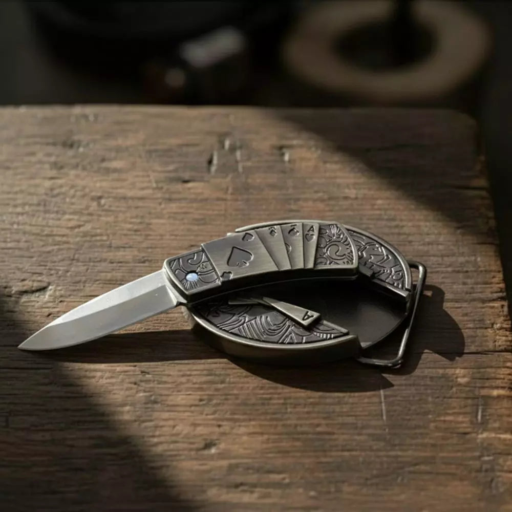 Fivela Cartas de Baralho com Canivete Secreto